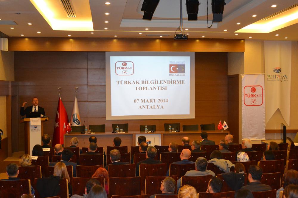 07 Mart 2014 günü, Antalya İhracatçılar Birliği konferans salonunda TÜRKAK tarafından organize edilen "TÜRKAK ve Akreditasyon" konulu bilgilendirme toplantısı yapıldı. Toplantıda bir konuşma yapan Avrupa Birliği Bakanı ve Başmüzakereci Sayın Mevlüt ÇAVUŞOĞLU, "Antalya’da 28 olan akredite kuruluş sayısı bu etkinlikle daha da artacaktır." dedi.
